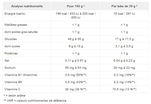 | Nutritional analysis | For 100g * | Per 27g tube * |