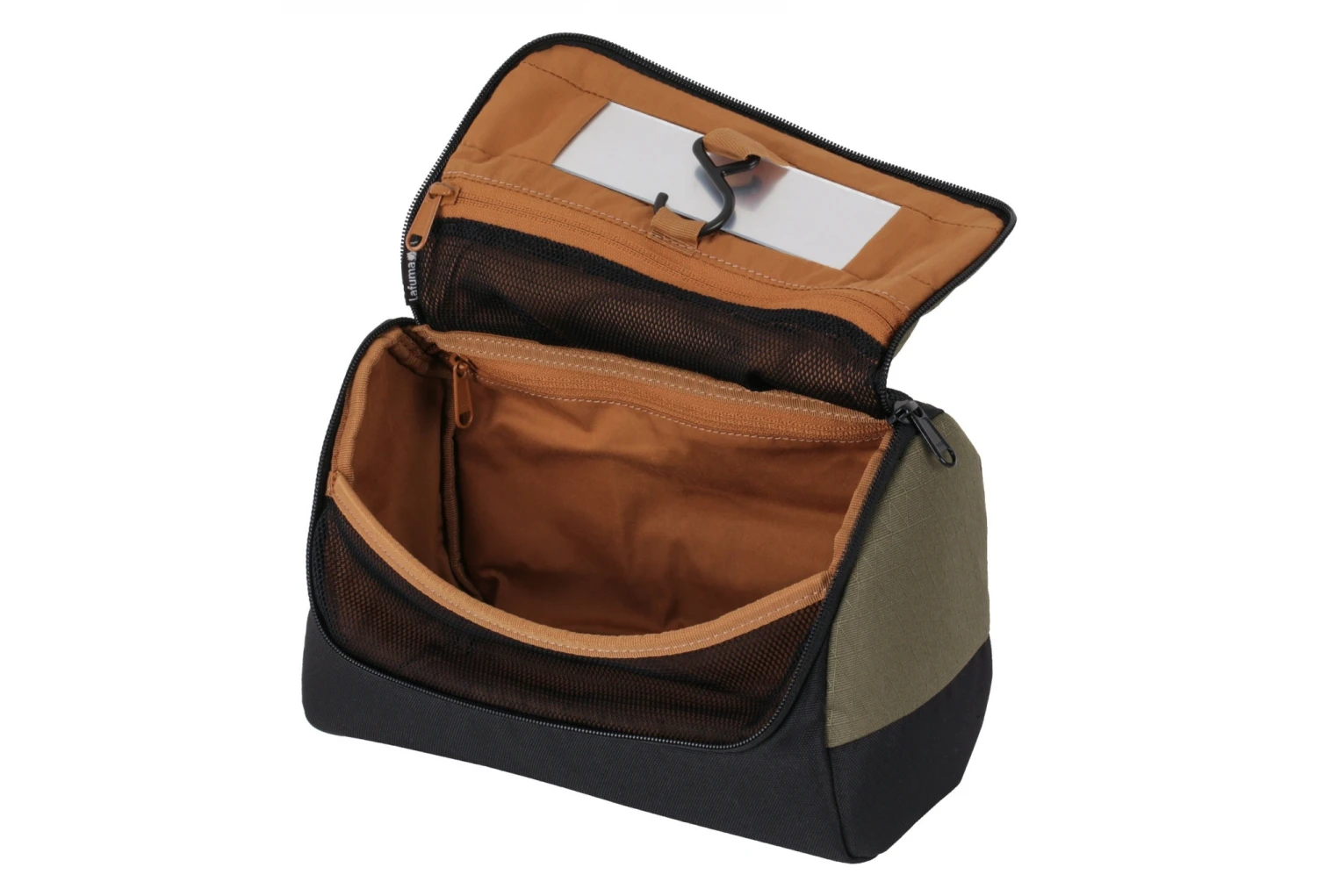 All your toiletries will find their place in the RUCK WASH BAG toiletry bag. Hanging hook and large mirror will make it the perfect companion for all your travels. All your toiletries will find their place in the RUCK WASH BAG toiletry bag. Hanging hook and large mirror will make it the perfect companion for all your travels.