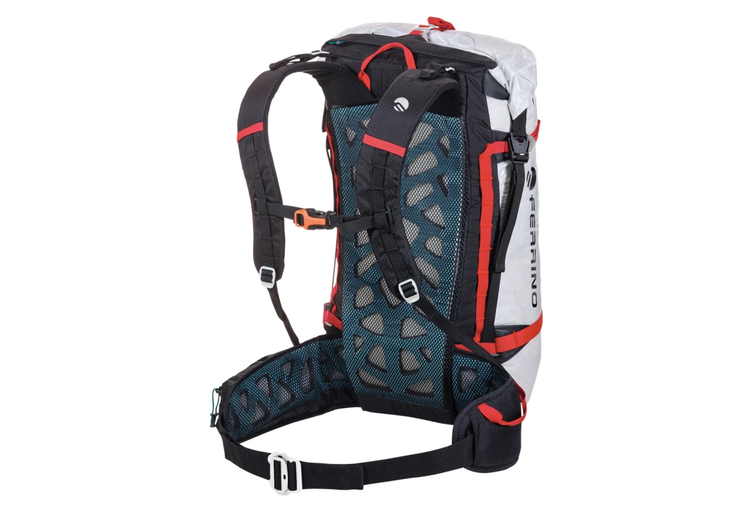 Mountaineering backpack in Dyneema® Composite Fabric, Cordura® Nylon and SuperFabric® reinforcements to guarantee an optimal resistance-lightness ratio. Essential in all respects, it has a main compartment with a rational volume, a versatile external gear system that allows the firm transport of ice axes, crampons, rope and much more. A pocket on the back and on the lumbar strap completes the equipment for organizing equipment. Designed to adapt to any activity, it is flexible in terms of weight and transport system, by removing the lumbar strap and additional ribbons: a real all-around for the mountain.