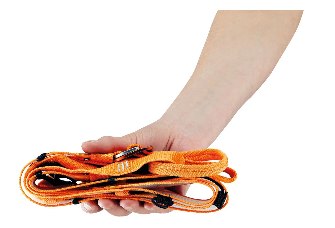– extremely thin and flexible waistband and leg loops, thanks to WIREFRAME technology. The HDPE (high tenacity polyethylene) threads deployed in the waistband and the thighs provide optimal load distribution, without the need for foams. The lightness and the comfort allow the harness to be forgotten.