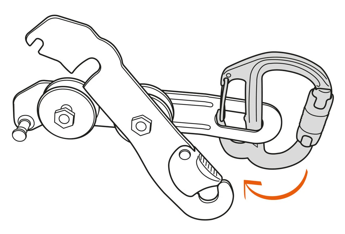 Can be turned over to make the STOP or SIMPLE descender captive when transferring from the equipment carrier to the half-round carabiner,