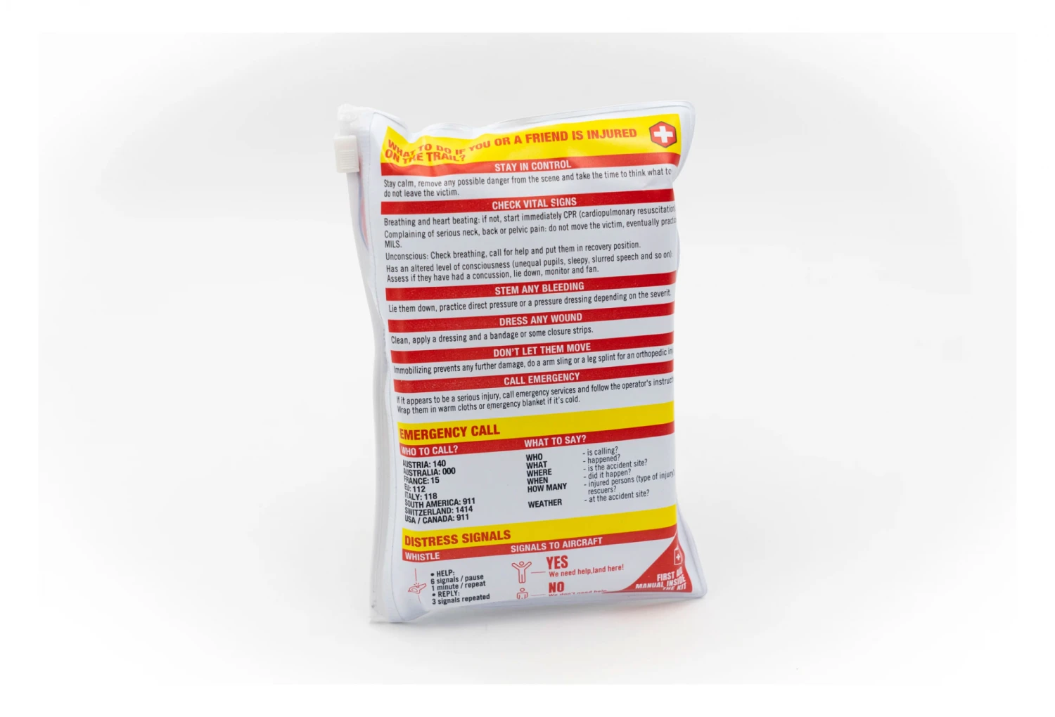 The Sendhit First Aid Kit supplies essential equipment and step-by-step instructions for dealing with the most common injuries and incidents on a ride. Because safety is every biker’s responsibility, we believe that all riders should be ready to help other riders (or ourselves) when accidents occur. We have designed a first aid kit specifically adapted to the requirements of mountain bikers and to the most frequent trauma in mountain biking: