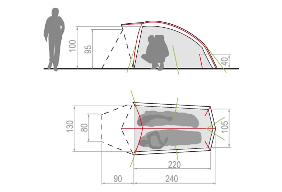 - Inner tent: 2.6 m² (2.6 sq ft)